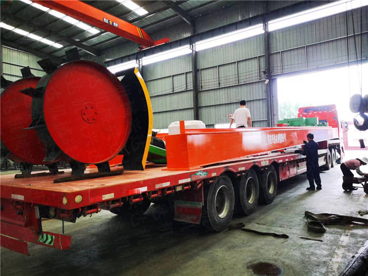新疆客戶15米有機肥液壓輪盤翻拋機發貨現場,翻拋深度1.5米