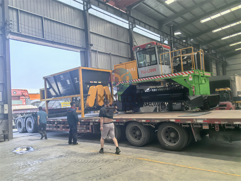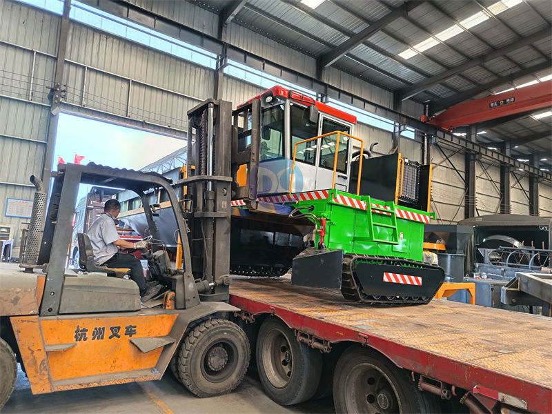 污泥鏟車料倉及履帶翻拋機(jī)發(fā)貨現(xiàn)場(chǎng)