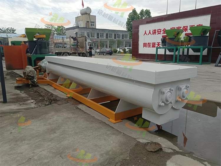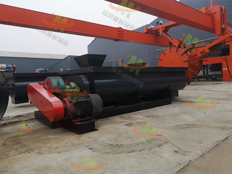 雙軸攪拌機(jī)利用兩根呈對(duì)稱狀的螺旋軸的同步旋轉(zhuǎn),在輸送干灰等粉狀物料的同時(shí)加水?dāng)嚢瑁鶆蚣訚窀苫曳蹱钗锪希_(dá)到使加濕物料不冒干灰又不會(huì)滲出水滴的目的,從而便于加濕灰裝車運(yùn)輸或轉(zhuǎn)入其它輸送設(shè)備。該機(jī)具有結(jié)構(gòu)緊湊,攪拌均勻,無(wú)揚(yáng)塵,符合要求等優(yōu)點(diǎn)。雙軸攪拌機(jī)內(nèi)裝有雙軸旋轉(zhuǎn)反向的漿葉,漿葉成一定角度將物料沿軸向、徑向循環(huán)翻攪,使物料迅速混合均勻臥式混合機(jī)性能特點(diǎn)減速機(jī)帶動(dòng)軸的旋轉(zhuǎn)速度與槳葉的結(jié)構(gòu)會(huì)使物料重力減弱,隨著重力的缺乏,各物料存在顆粒大小、比重懸殊的差異在混合過(guò)程中被忽略。激烈的攪拌運(yùn)動(dòng)縮短了一次混合的時(shí)間,更快速、更高效。豬糞雙軸濕式攪拌機(jī) 雞糞有機(jī)肥拌料機(jī) 牛糞污泥混合攪拌機(jī)